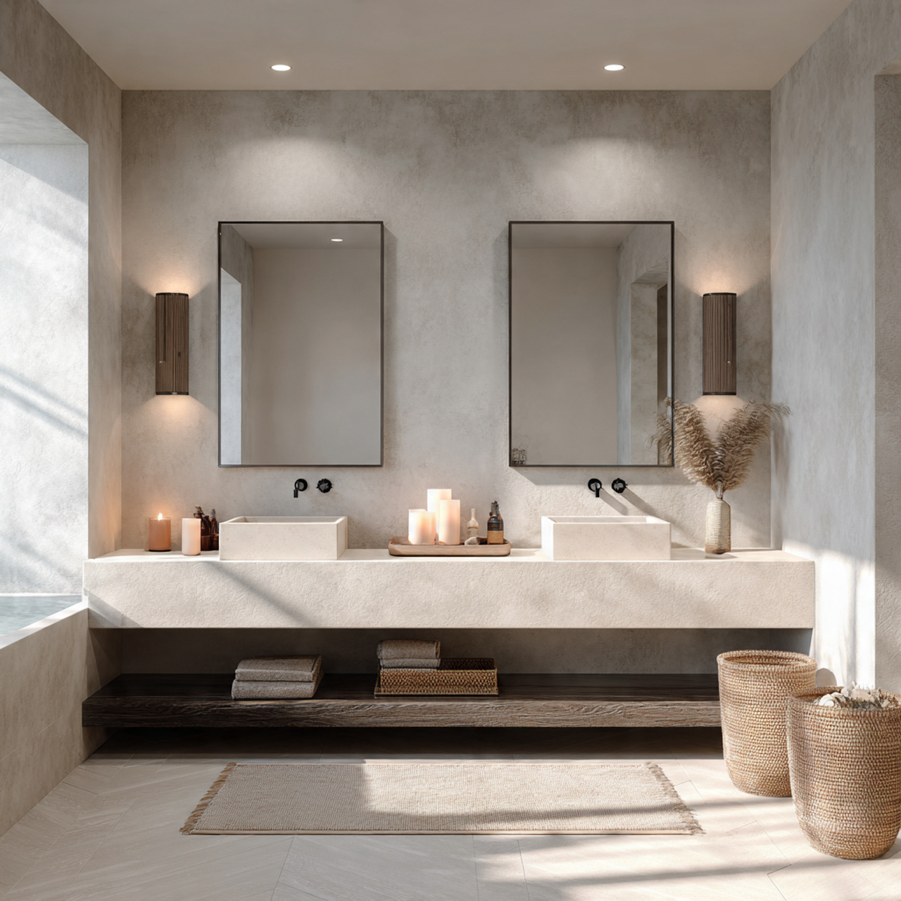 1. Soft Neutral Bathroom with Layered Natural Textures
