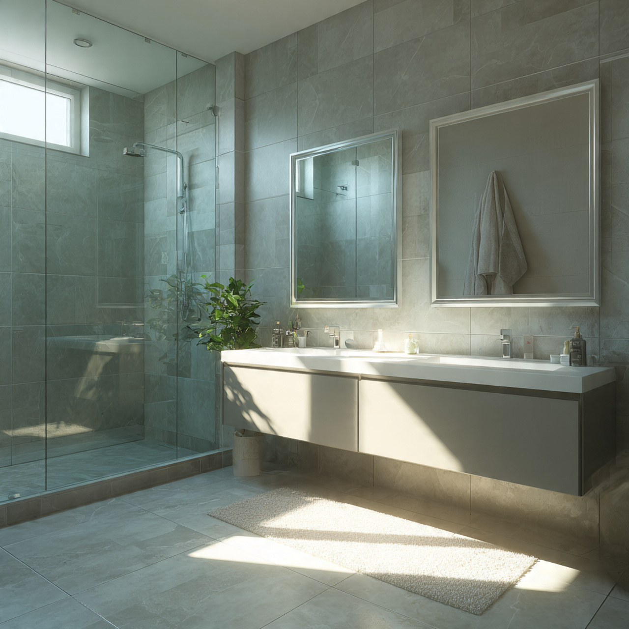 Light reflections play a subtle role here. Natural light bouncing off glass and tile creates a soft glow that feels refreshing.