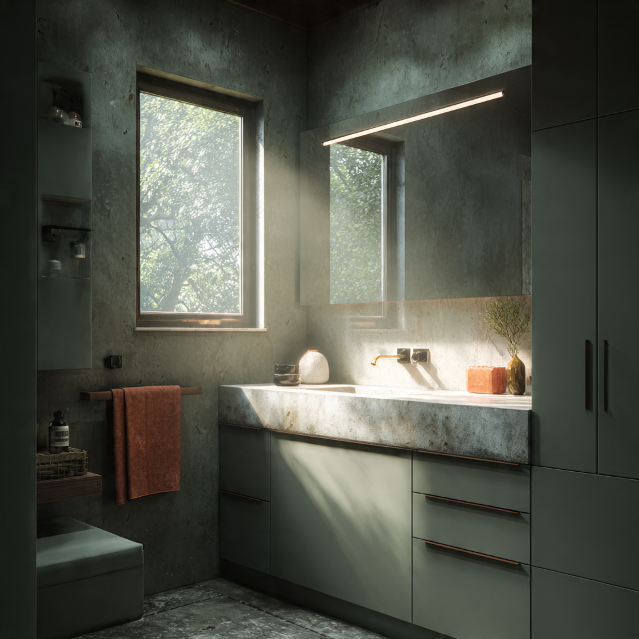 Sage green feels especially calming in bathrooms used for winding down. The space feels peaceful, balanced, and visually larger than it actually is.