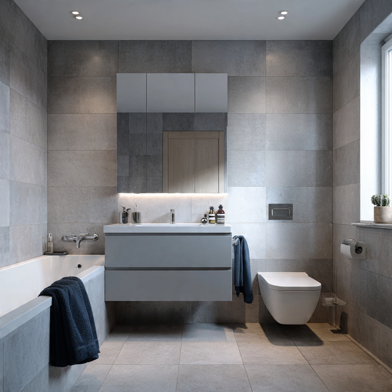 Soft gray can feel incredibly spacious when used gently. In small bathrooms, it works best when contrast is kept low and finishes stay simple. The result feels clean, modern, and quietly elegant.