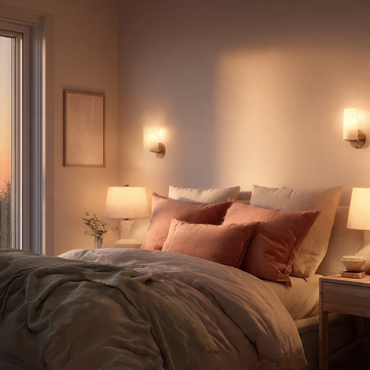 Lighting has a powerful effect on sleep, especially in the evening. Bright white light can keep your brain alert, while warm lighting helps signal that it is time to rest.
