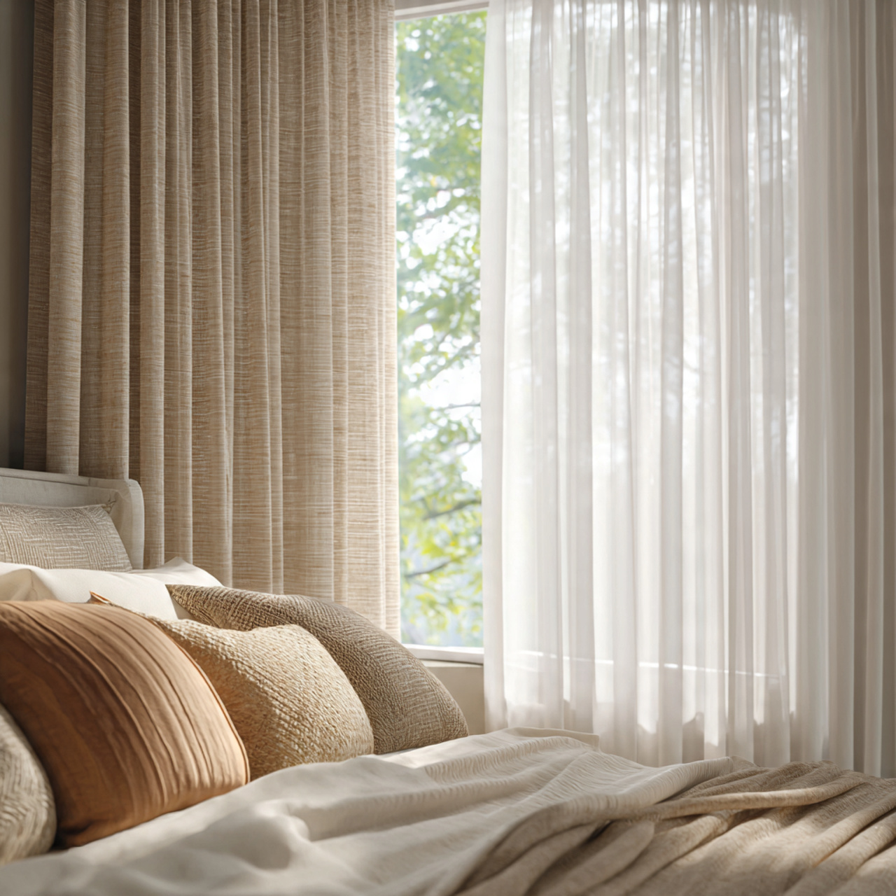 Layering sheer curtains with blackout panels gives you flexibility. You can enjoy natural light during the day and complete darkness at night.
