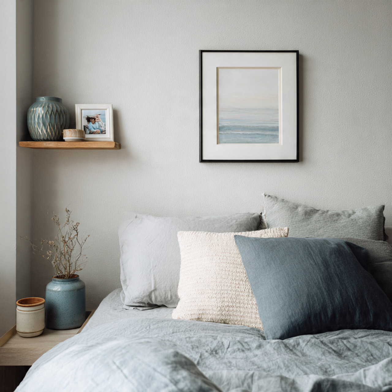If you want subtle depth without distraction, layer similar shades instead of adding contrast. This keeps the room soothing and visually quiet, which supports deeper rest at night.