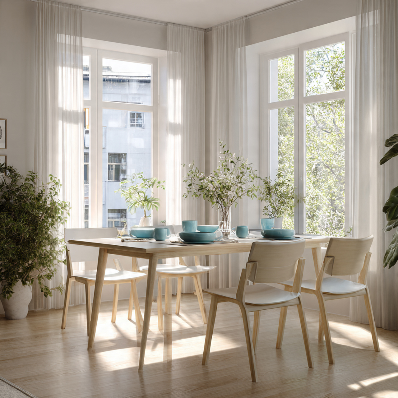3. A Light Filled Minimalist Dining Room With an Airy Atmosphere