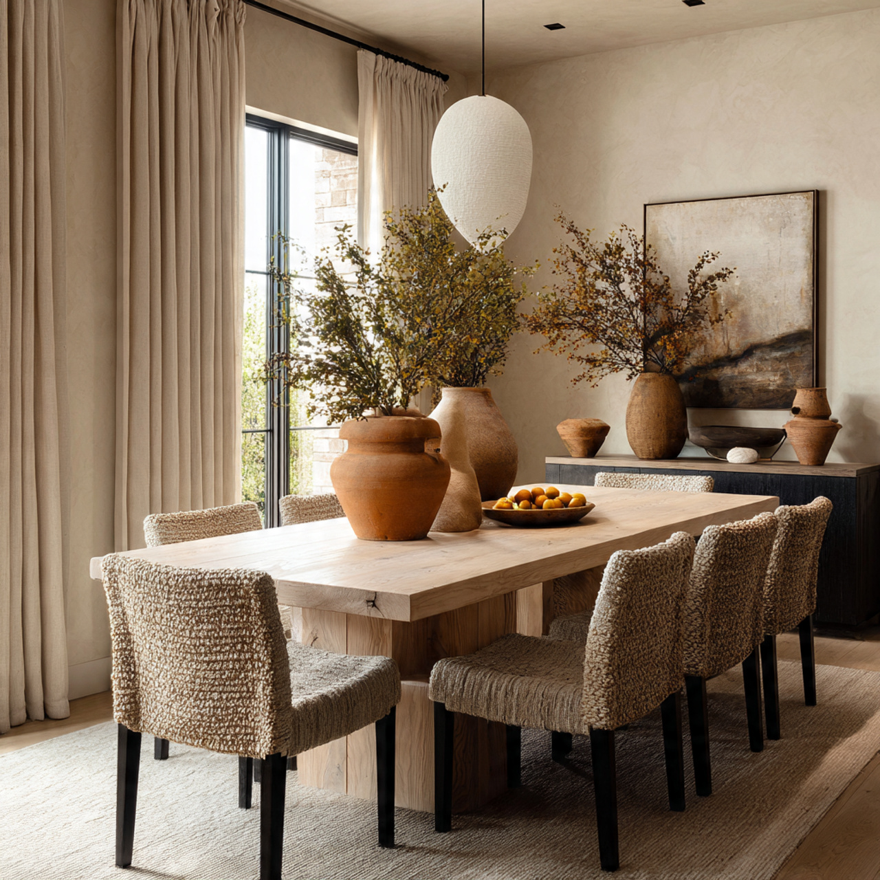 Some dining rooms feel calm because nothing is shouting for attention. This idea focuses on quiet, intentional choices.