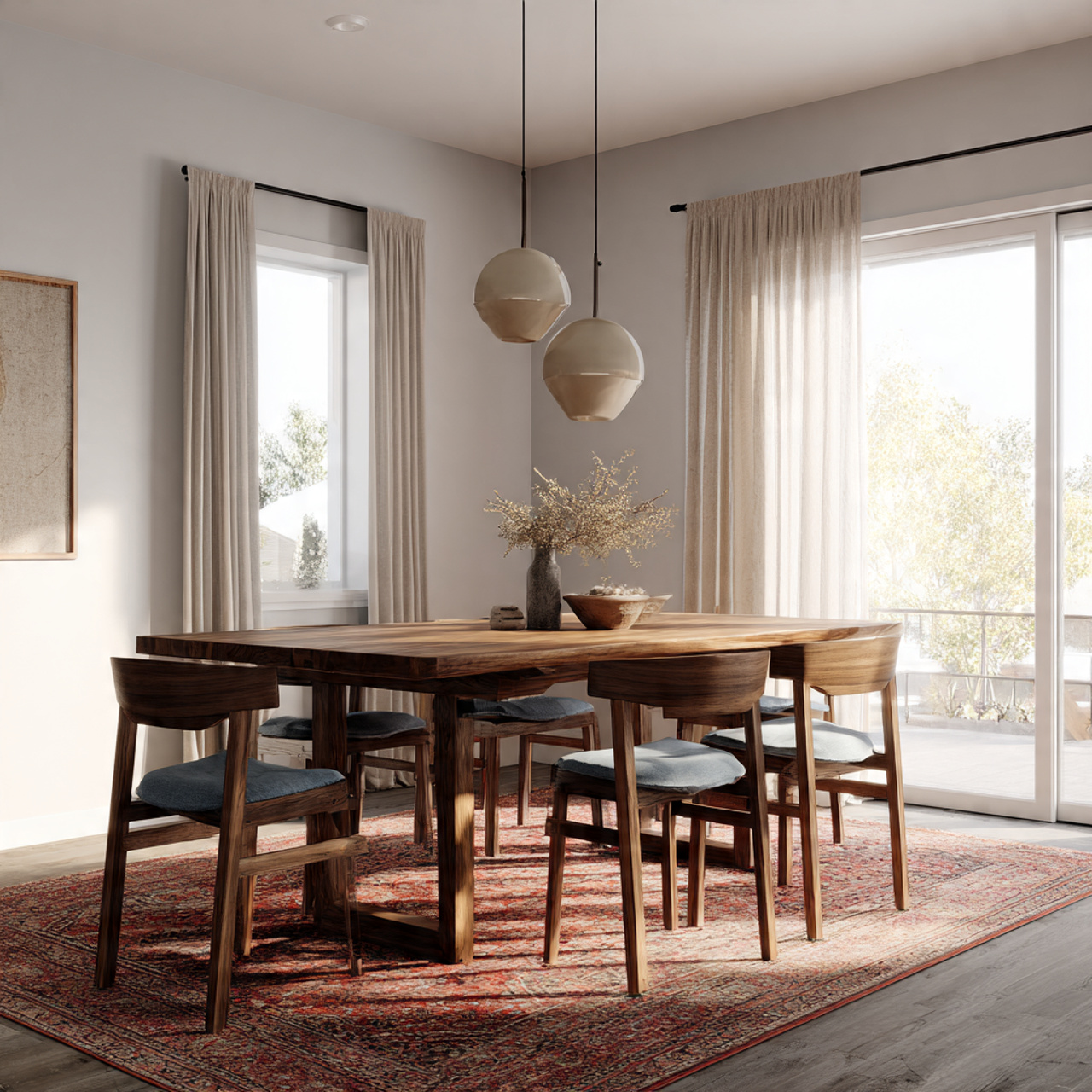 When a dining room is filled with natural light, it naturally feels warm and welcoming. Large windows, sheer curtains, or no window treatments at all help keep the space open.