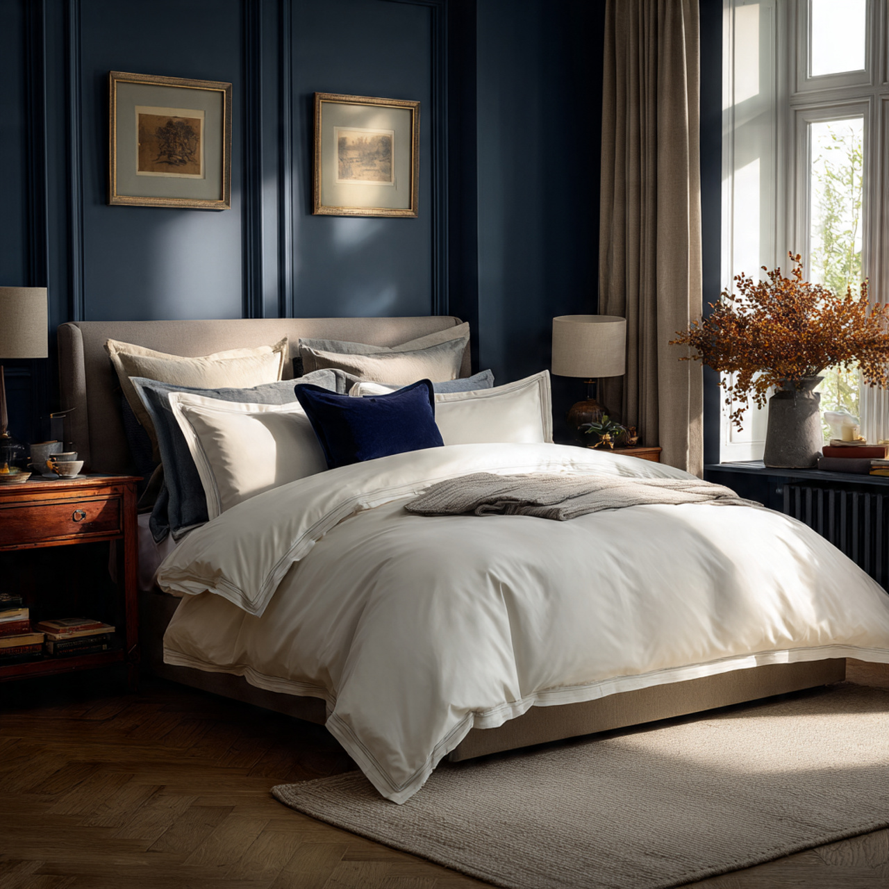 Crisp white sheets are one of the most classic old money details you can add. They feel fresh, luxurious, and timeless, no matter the size or style of the bedroom.