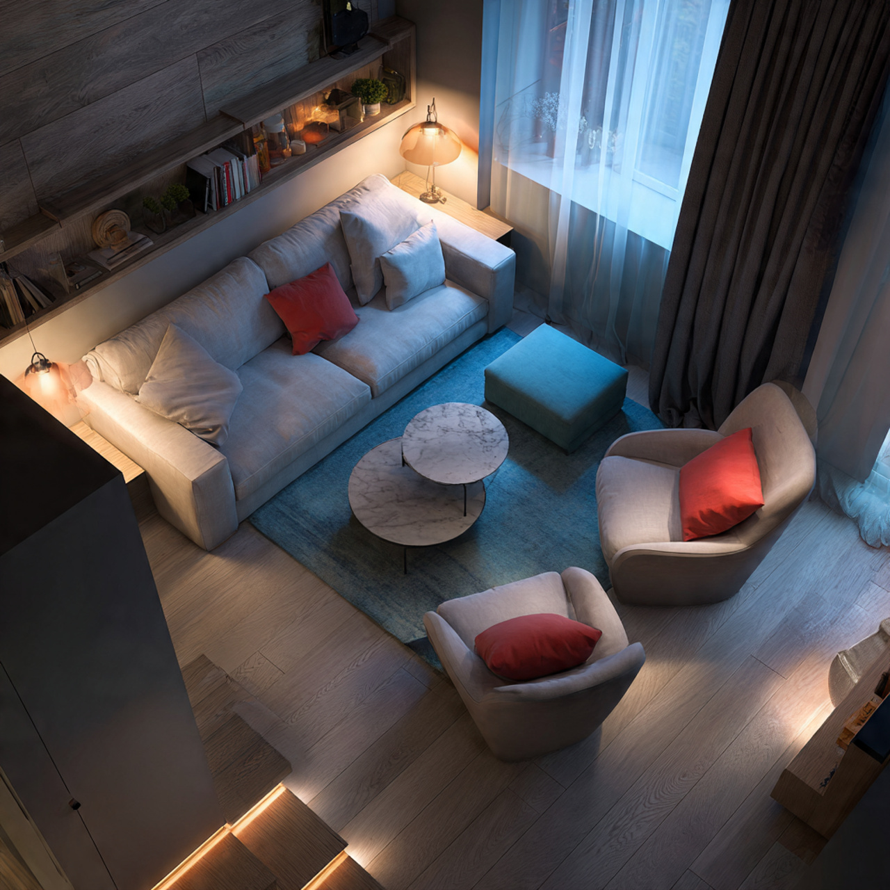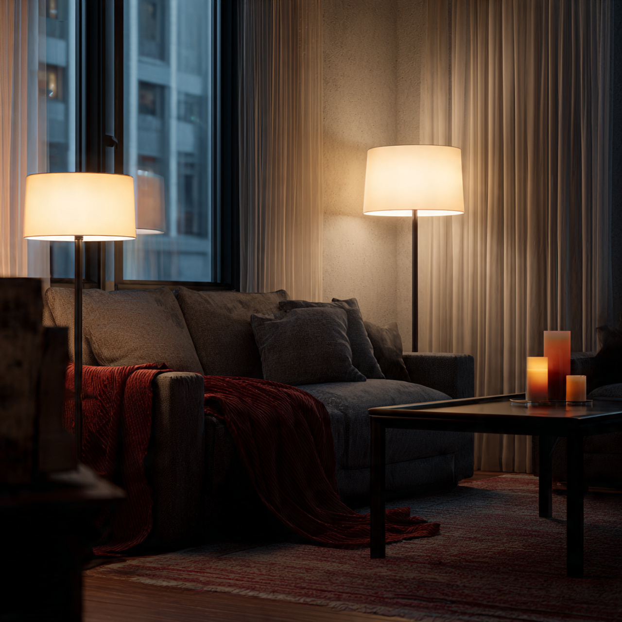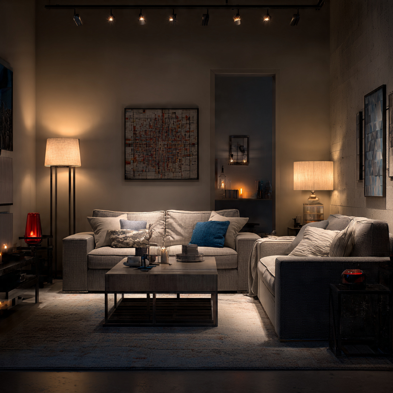 17. Warm Evening Living Room Atmosphere with Soft Lighting