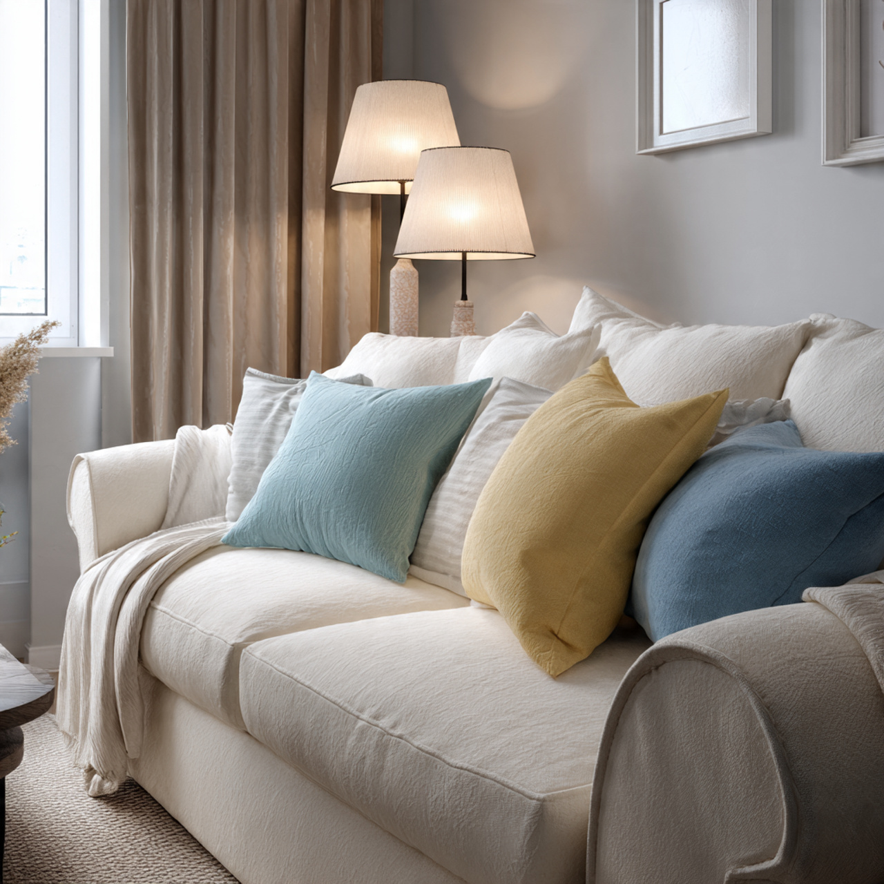 - Linen or cotton cushion covers