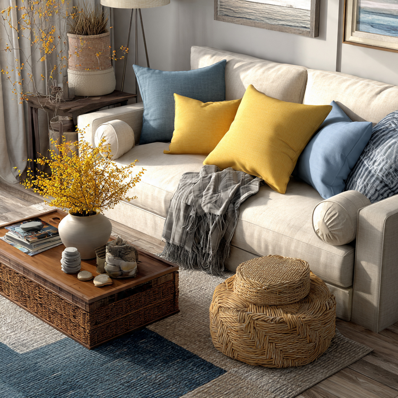 Accessories help bring everything together. Cushions, trays, books, and baskets add layers without major expense or commitment.