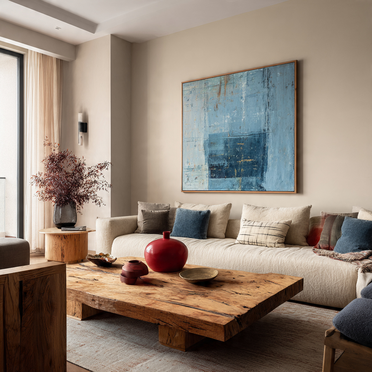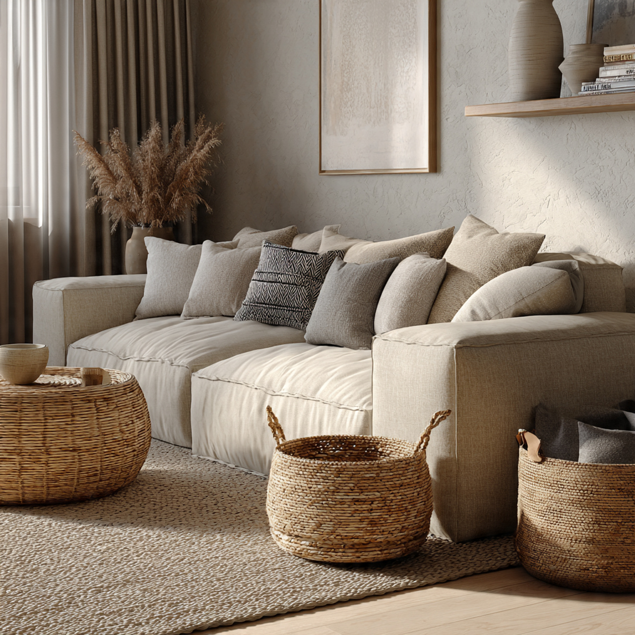 3. Calm Beige Living Space with Relaxed, Low Seating