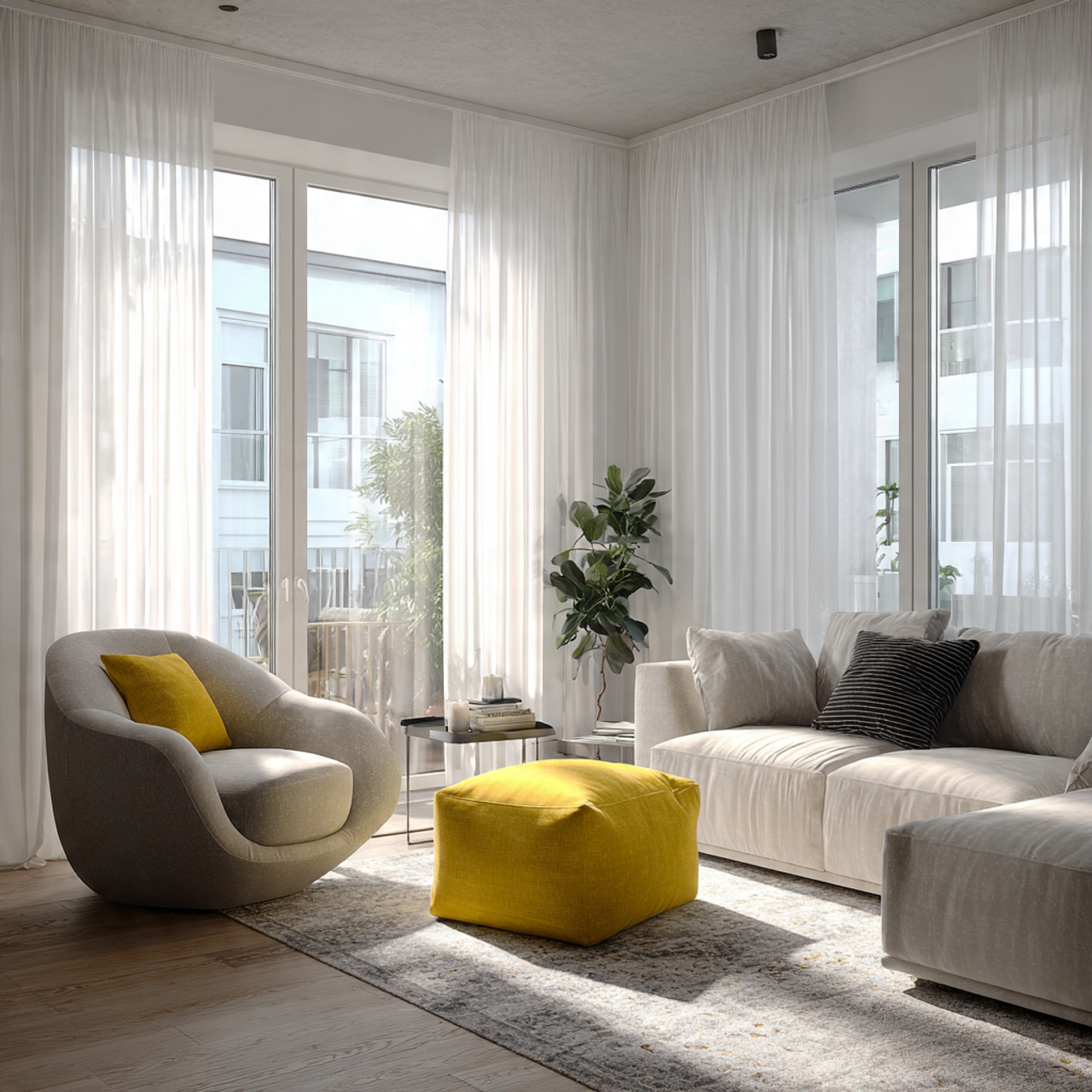 5. Light-Filled Apartment Living Room with Sheer Curtains